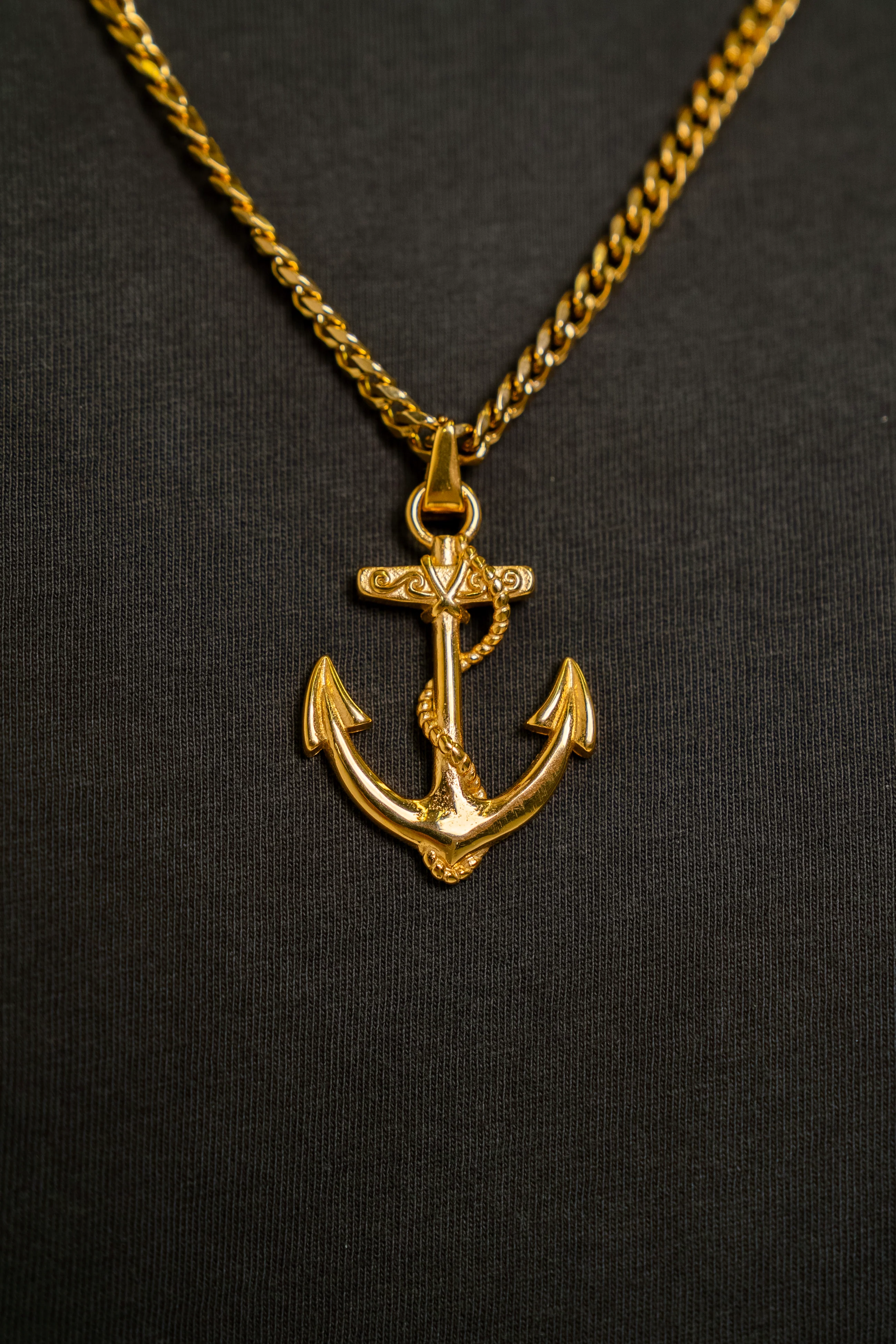Crafted in gleaming gold, this anchor pendant will anchor you on your journey, wherever it may lead.