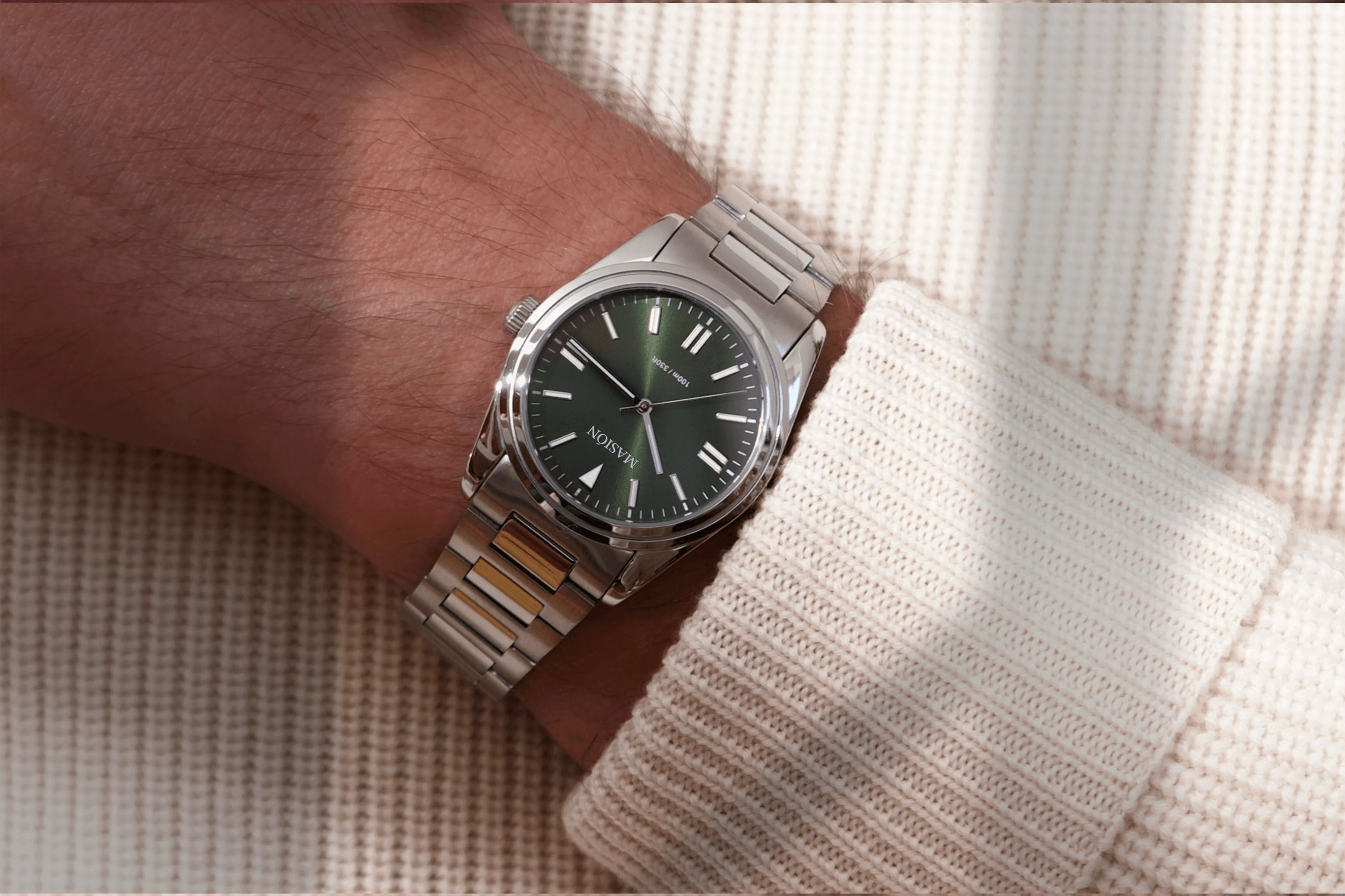 The VOYAGÉ Olive Green Silver watch combines classic style with modern flair. With its bold and eye-catching design, this timepiece is perfect for those who want to stand out from the crowd.